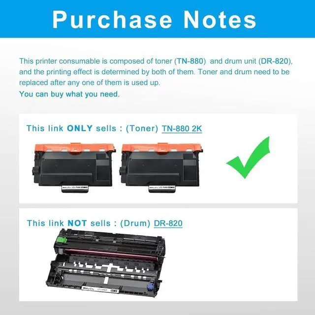 Reliable QualityLCL TN880 Black toner cartridge uses high quality toner, toner particle size distribution, good mobility, high transfer rate, resulting in a clear image and high gloss print effect; Printing efficiency is high, waste powder rate is low, so as to ensure sufficient page yield.