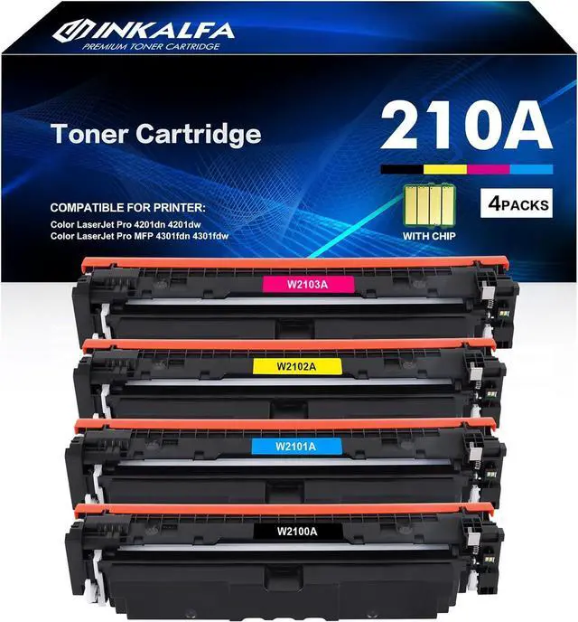 Superior quality: High-efficiency 210A with chips toner to get the clear text and vivid color printing. These 210A W2100A toner cartridges are alread installed with orginal chips, No need to transfer orginal 206A toner chip to them