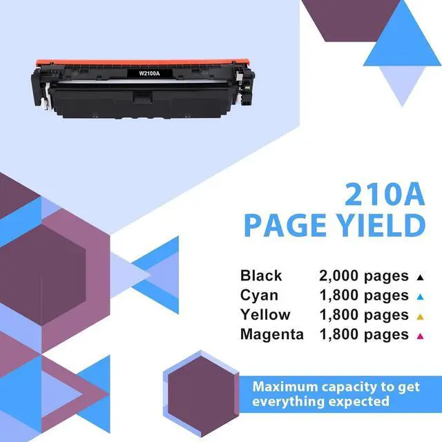 High Page Yield: Up to 2,000 Pages for 210A Black Toner Cartridges & 1,800 Pages for 210A Color Toner Cartridges (Letter A4, at 5% coverage)
