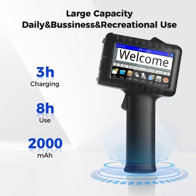 Compact Design: With ergonomics in mind, this handheld inkjet coder offers a comfortable grip and is lightweight, making it easy to hold for long periods without causing fatigue. Its design makes it highly portable, allowing you to work efficiently anytime, anywhere.