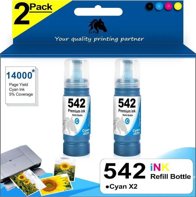 Package for 542 Cyan Ink Refill Bottles 2 Pack: 2 x 70ml T542 Cyan Pigment (T542220-S). [Non-sublimation]