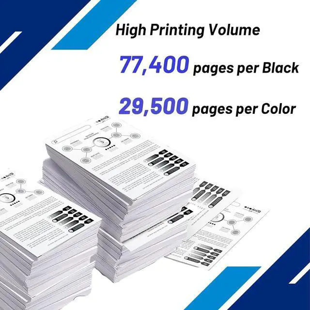 • High Page Yield: Get up to 77,400 pages per black toner and 29,500 pages per color toner at 5% coverage on A4-size paper