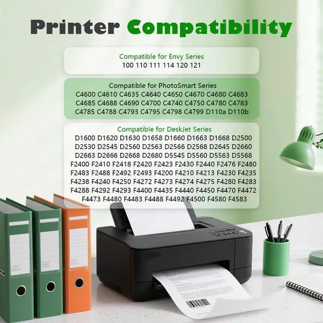 Printer Compatibility: 60XL Black and color Ink Cartridges Compatible for hp Ink 60 for HP DeskJet D1660 D2530 D2545 D2560 D2660 D2680 D5560 F2430 F2440 F2480 F4210 F4235 F4240 F4280 F4435 F4440 F4480 F4580 PhotoSmart C4635 C4640 C4650 C4680 C4740 C4750 C4780 C4795 D110a OfficeJet J4540 J4550 J4580 J4680 4500 ENVY 100 110 111 114 120 121