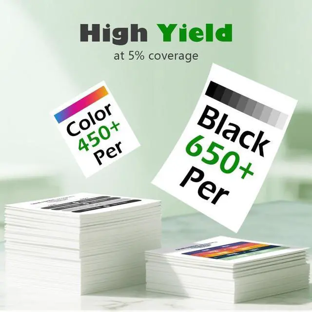 High printing page count : up to 600 Pages for 60XL black ink cartridge, up to 450 Pages for 60XL tri-color ink cartridges (Based on 5% coverage of A4 paper)
