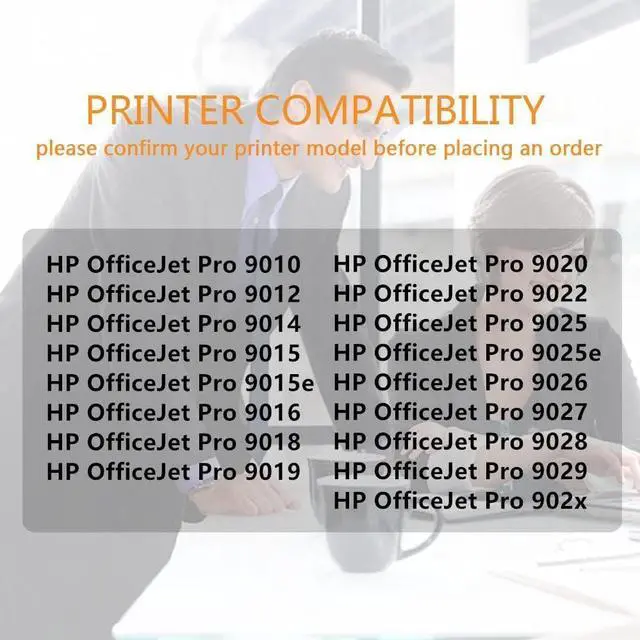 Compatible Printer: HP Officejet Pro 9010 9012 9014 9015 9015e 9016 9018 9019 9020 9022 9025 9025e 9026 9027 9028 9029 902x Printer
