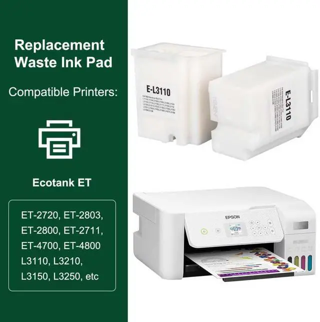 Wide Compatibility: L3110 waste ink tank is compatible with EPSON and is suitable for printer models including ET-2800, ET-2803, ET-4800, ET-2400, ET-2720, ET-4700, ET-2711, L3110, L3250, L3150, L3210 etc. Printers.