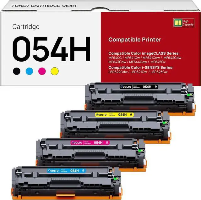 PACKAGE CONTENTS: 1 x 054H Black, 1 x 054H Cyan, 1 x 054H Yellow, 1 x 054H Magenta, total 4 pack 054H toner cartridges high yield replacement