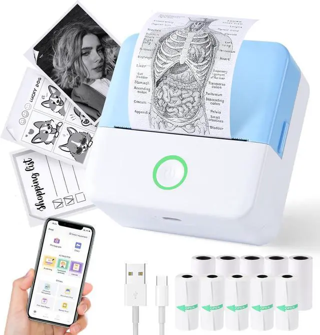 Customized Thermal Inkless Printer: The Inkless sticker printer uses thermal printing technology and is equipped with 5 rolls of adhesive printing paper & 5 rolls thermal printing paper , ink-free printing, the 2-inch wide thermal paper can be freely cut to length or shape, as well as labels size to create your own sticker ideas anytime, anywhere (Black and White only)