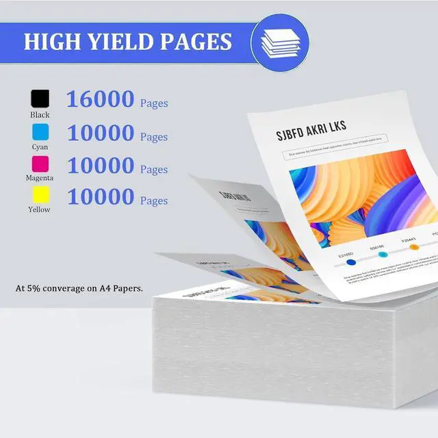 Pages: 16,000 Pages per C4150 black toner cartridge, 10,000 Pages per C4150 cyan/magenta/yellow toner cartridge (at 5% coverage on A4 papers)