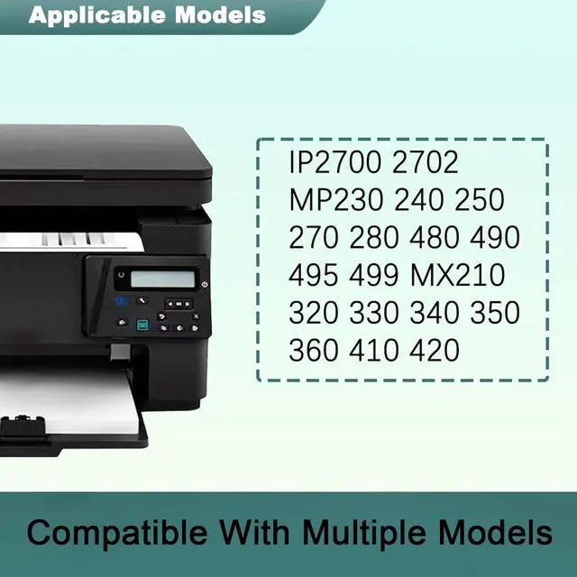 It is perfectly suitable for IP2700 2702 MP230 240 250 270 280 480 490 495 499 MX210 320 330 340 350 360 410 420 printers, which can be seamlessly connected and provide robust and reliable support for various printing tasks.