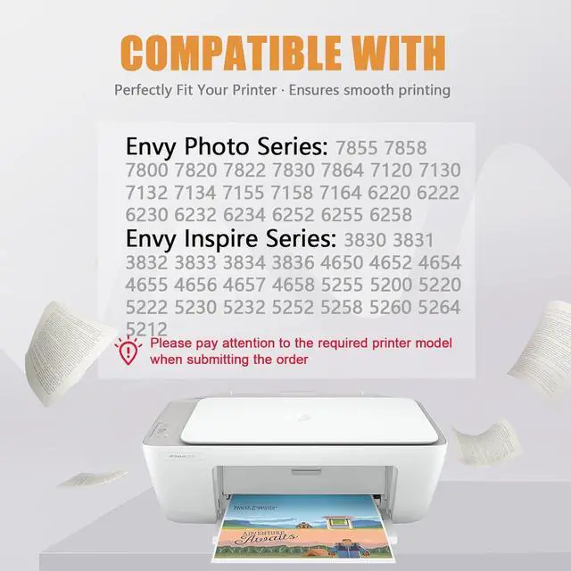Compatible with: Compatible for HP Envy Photo series:7855 7858 7800 7820 7822 7830 7864 7120 7130 7132 7134 7155 7158 7164 6220 6222 6230 6232 6234 6252 6255 6258;Envy Inspire series: Envy Inspire 7955e printers