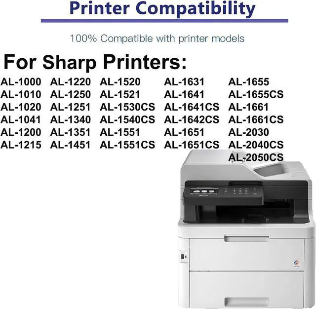 Compatible for: Sharp AL-1000, 1010, 1020, 1041, 1200, 1215, 1220, 1250, 1251, 1340, 1351, 1451, 1520, 1521, 1530CS, 1540CS, 1551, 1551CS, 1631, 1641, 1641CS, 1642CS, 1651, 1651CS, 1655, 1655CS, 1661, 1661CS, 2030, 2040CS, 2050CS Printer