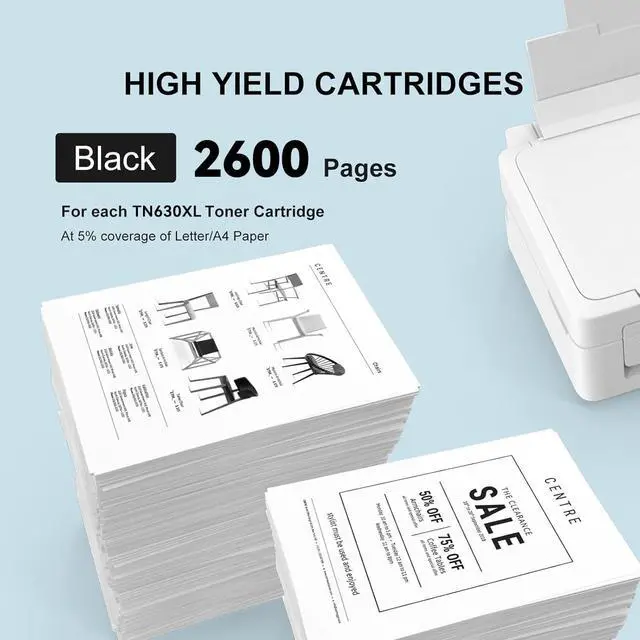 TN630 High Page Yield: Each TN830XL toner cartridge delivers an impressive yield of up to 1,800 pages at 5% coverage on A4/Letter-sized paper, helping you stay productive while reducing the hassle of frequent replacements