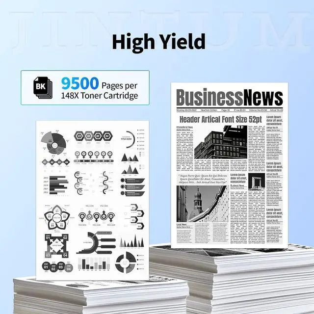 • Page Yield: 148X black toner cartridge is up to 9,500 pages per cartridge at 5% coverage