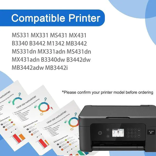 Compatible Printer: For Lexmark MS331 MX331 MS431 MX431 B3340 B3442 M1342 MB3442 Printers