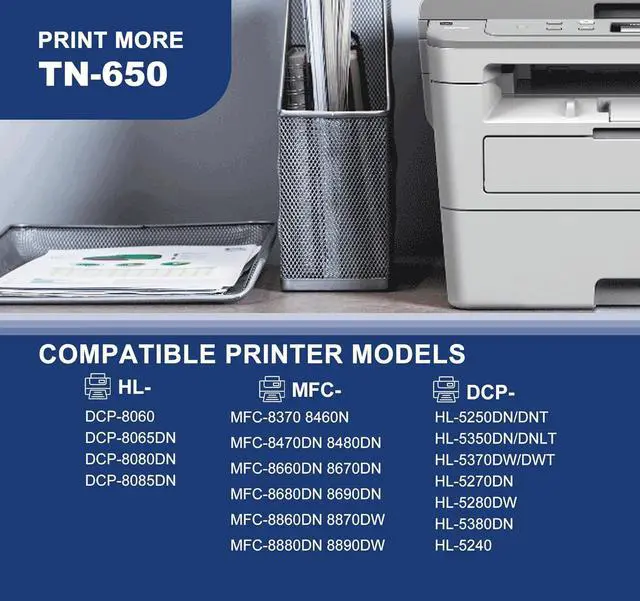 Compatible printer modelsHL-5240 HL-5250DN/DNT HL-5270DN HL-5280DW HL-5350DN/DNLT HL-5370DW/DWT HL-5380DN MFC-8370 MFC-8460N MFC-8470DN MFC-8480DN MFC-8660DN MFC-8670DN MFC-8680DN MFC-8690DN MFC-8860DN MFC-8870DW MFC-8880DN MFC-8890DW DCP-8060 DCP-8065DN DCP-8080DN DCP-8085DN Printer