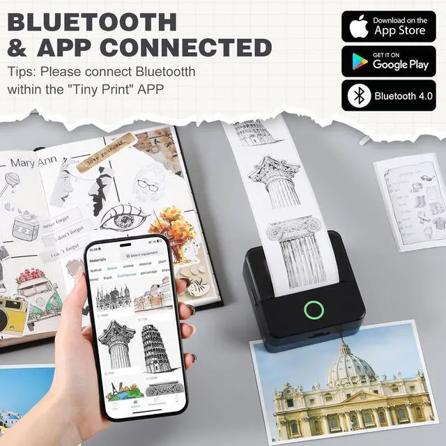 Multifunctional Mini Printer: Using the mini sticker printer, you can print black and white photos, pictures, study notes, to-do lists, shopping lists, etc. as well as customize bookmarks, labels, magazines and greeting cards, the APP contains a variety of templates and is compatible with Android 4.0 and IOS9.0 or higher