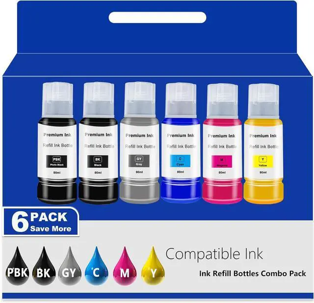 Complete 6-Pack Refill Solution: This combo pack includes six vibrant dye ink bottles: Black, Cyan, Magenta, Yellow, Photo Black, and Gray. Perfectly tailored for a variety of printing needs, from professional-quality photos to sharp, detailed documents.