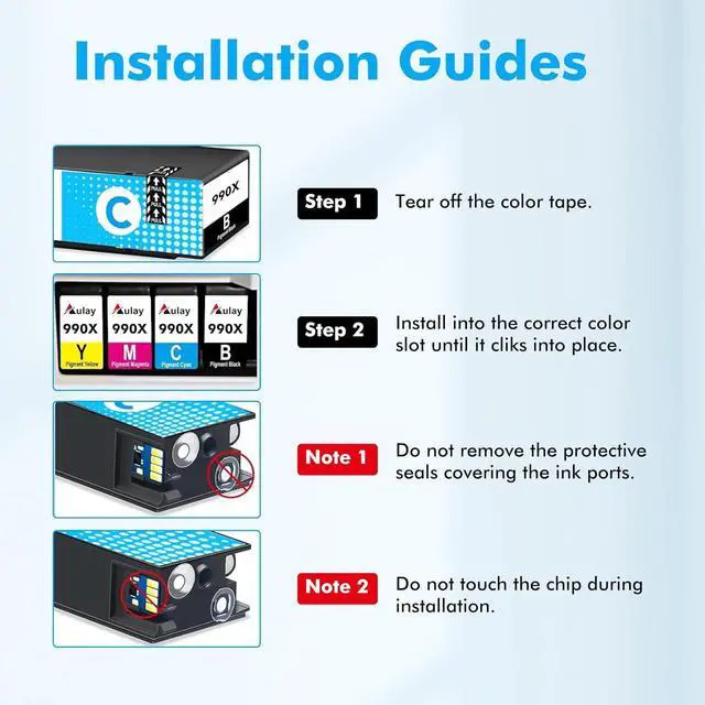 Latest Upgraded ChipsAulay 990X ink cartridge combo pack with latest chip upgrade for 100% printer recognition.New and improved ink formula brings you alive picture. Upgraded technical makes intallation smoothly