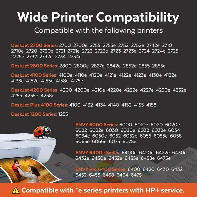 Competitible with DeskJet 2700 2800 Series :DeskJet 2700 2700e 2710e 2720e 2721e 2722 2722e 2723e 2724 2724e 2725 2725e 2732 2732e 2734 2734e 2742e 2752 2752e 2755 2755e 2800e 2827e 2842e 2852e 2855 2855e