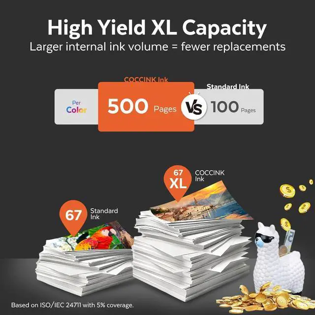 High Page Yield: Up to 450 pages (20 ml) per 67XL Color Ink (based on 5% A4 coverage). The actual number of pages may vary by printer and usage. Enjoy more prints compared to standard cartridges