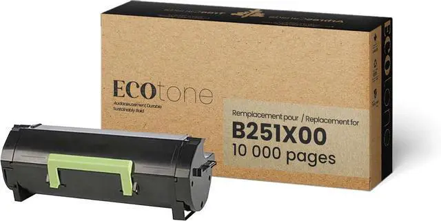 Ecotone Toner Cartridge - Remanufactured for Lexmark B251X00 - Black Made in Canada
