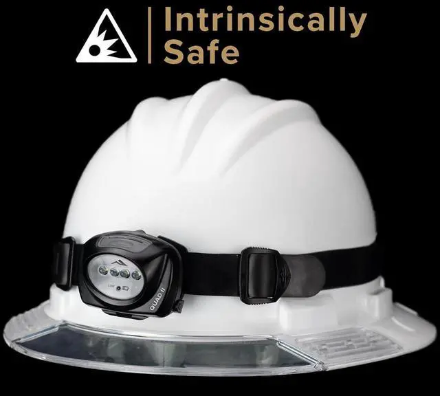 The second in our series of Intrinsically Safe headlamps, the Quad II provides unparalleled design and performance. The Quad II shares the same basic design principals as the original and proven Quad but takes it up to a UL Cl1 Div. 1 rating. The fundamental lighting characteristics of the Quad II provides a vast amount of area light for all purpose needs and performing up-close tasks. The light beam is smooth and wide allowing you to work with your hands without glare or reflection. With its robust walls, superior materials, and waterproof design, the Quad II is suited for any environment. Features: - Intrinsically Safe - UL Rating: Class I Division 1, Groups A, B, C & D - UL Temp Code: T4 Includes Industrial Headlamp Kit: Rubber hard hat strap, 3M Dual Lock, Standard nylon headstrap