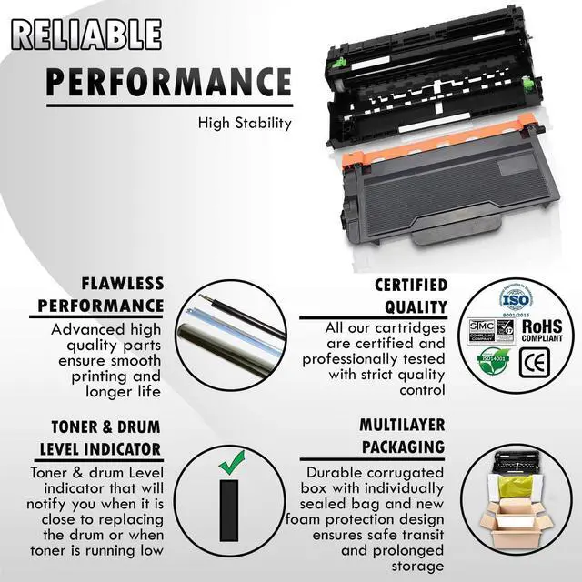 This Value Pack contains a total of 2 compatible toner cartridges & drum for Brother TN-850 DR-820.