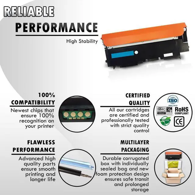 These Toner cartridges compatible with Samsung CLT-C406S Cyan are warrantied with a Two Years Guarantee Policy against manufacturing defects
