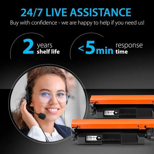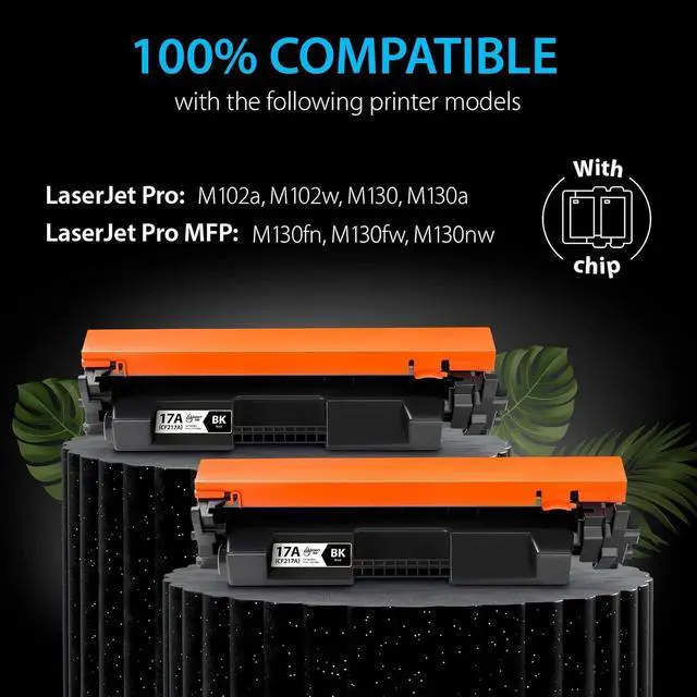 Package Contents: 2 x Black 17A CF217A (2 cartridges with chip in total)