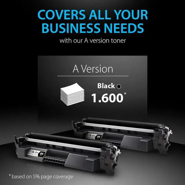 High Page Yield: Up to 1600 pages per each Black toner cartridge (at 5% page coverage)