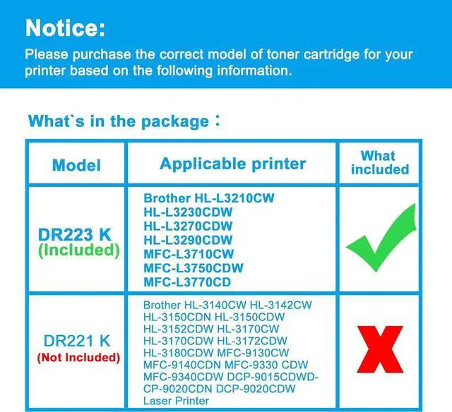 Compatible PrintersReplacement for Brother HL-L3210CW HL-L3230CDW HL-L3270CDW HL-L3290CDW MFC-L3710CW MFC-L3750CDW MFC-L3770CD