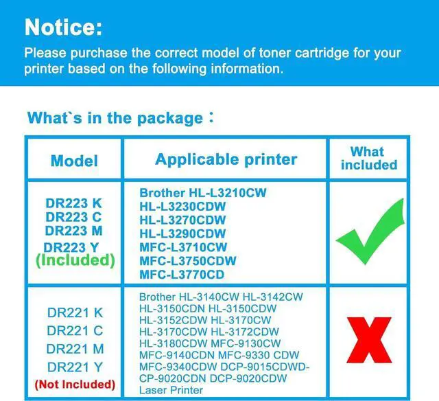 Compatible PrintersReplacement for Brother HL-L3210CW HL-L3230CDW HL-L3270CDW HL-L3290CDW MFC-L3710CW MFC-L3750CDW MFC-L3770CD
