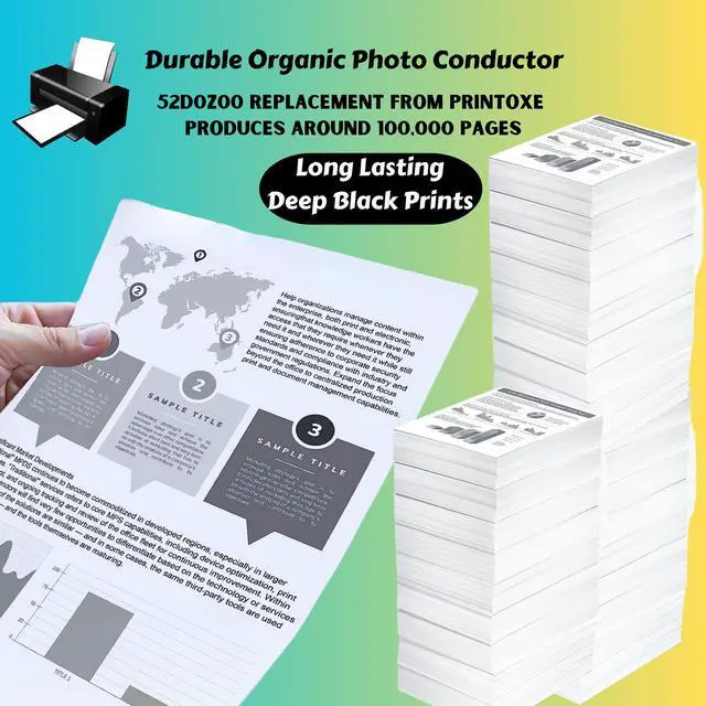 Premium Quality Drum Unit & Toner Cartridges; a Total of 2 Units High Capacity. Compatible Replacements 52D0Z00 Drum and 521H00 / 521H Toner Cartridges. The Capacity of the Drum is 100, 000 Pages and the Toner Cartridge Yield is Around 25, 000 Pages. Saver Package for Lexmark MS810N / MS810DN / MS810DE / MS810DTN / MS811N / MS811DN / MS811DTN / MS812DN / MS812DTN / MS812DTN / MS710dn / MS710n / MS711dn Printers