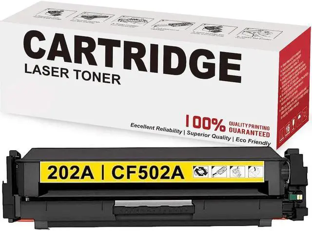 Compatible Yield 1300 Pages Yellow Toner Cartridge Compatible with: CF502A, 202A 3 Years Shelf Life 1 Year Warranty