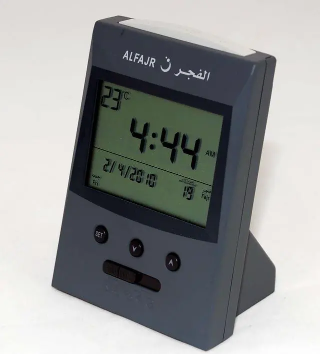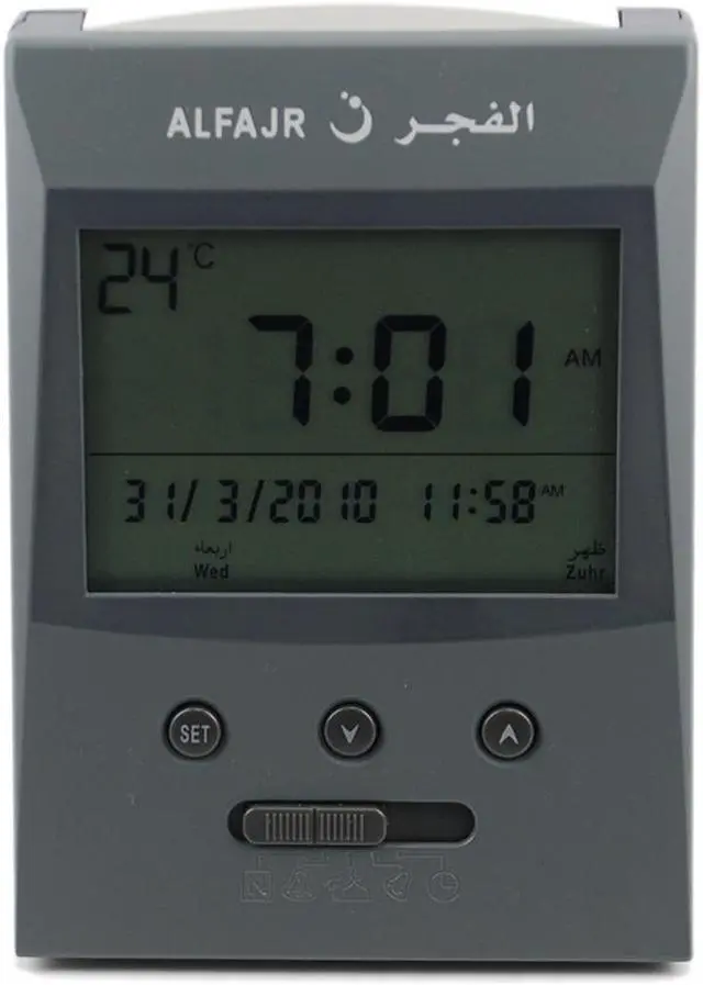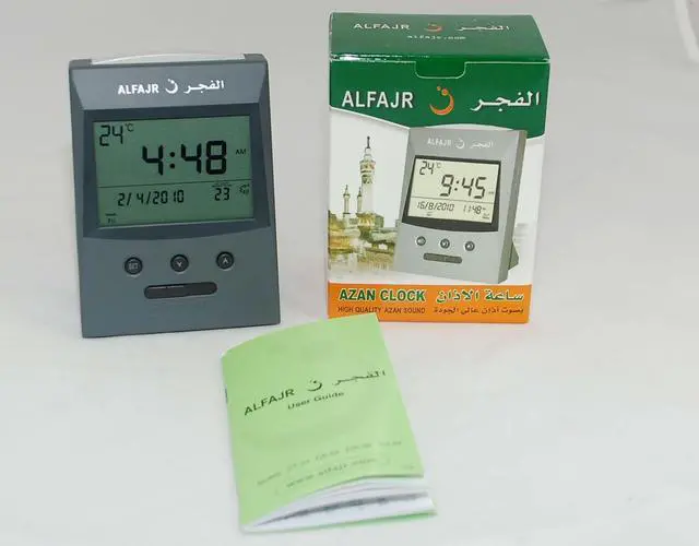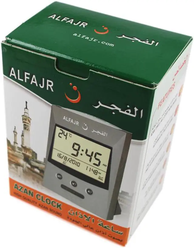 AlFajr CS-03 is a beautiful and functional Islamic table clock, that calls for prayer with a complete azan five times a day.