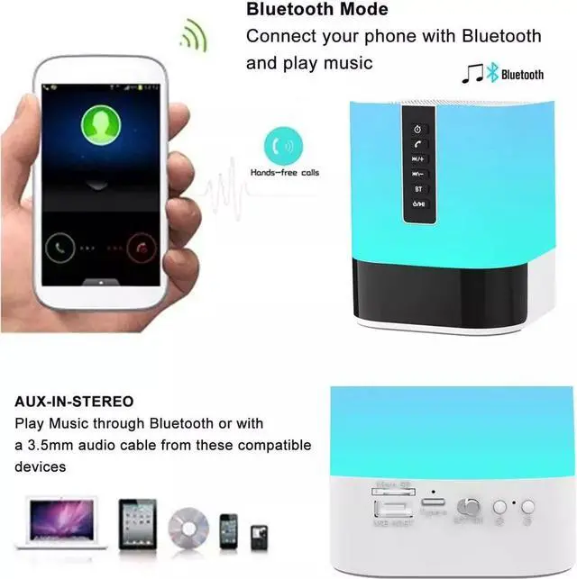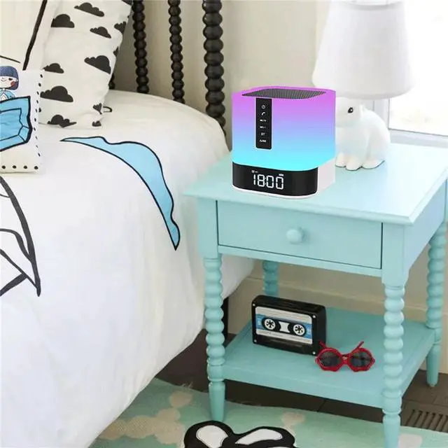 Super Multifunction: Best gift for all festivals! Touch Control Night Light + Bluetooth Speaker + MP3 Player + Digital Alarm Clock Compatible with all bluetooth devices Support flash drive micro SD card input 3 level brightness adjustable with the cool touch sensor design warm led night light can provide a comfortable environment create for you.