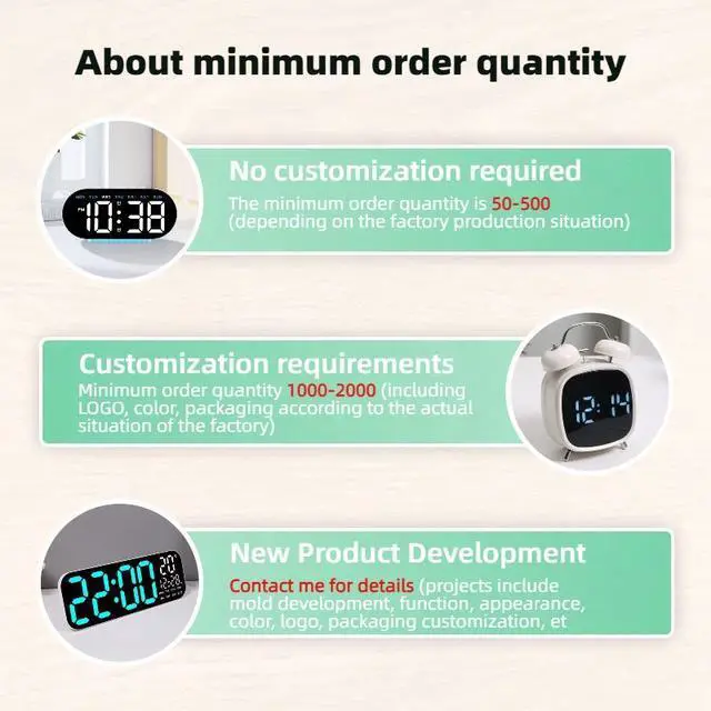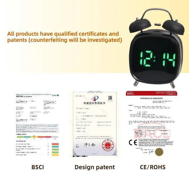 • Vibrating Alarm Clock Smart Display Day Date Time Led Alarm Clock for People with Hearing Impaired