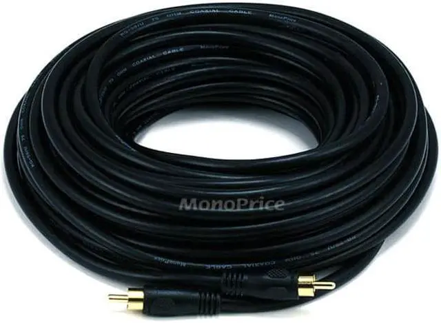 This Digital Coax Cable is made from premium quality RG59U coaxial cable with double shielding to prevent signal degradation caused by EMI and RFI interference. The conductor is made of 99.999 % pure bare oxygen-free copper, while the shield consists of an inner layer of Aluminum-Mylar foil with 100% coverage and an outer layer of copper braid. This cable is ideal for conducting S/PDIF digital audio signals and other high-bandwidth content, but it is also ideal for composite video, audio interconnects, and other line level RCA signals. The VW-1 rating on this cable indicates that the jacket has been treated so that it complies with fire safety regulations, making it safe for use through or within the walls of residential class buildings.