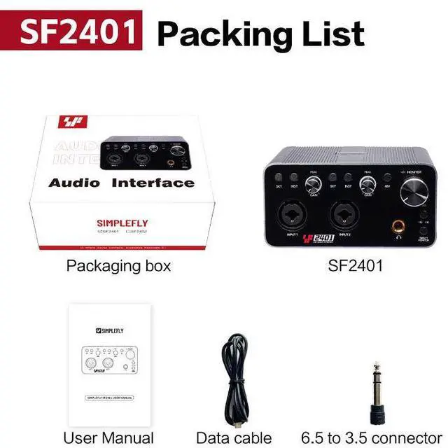 USB 2-in-2 Out Audio Interface 2-Channel Recording Sound Card for Vocals Instruments Podcasts Streaming