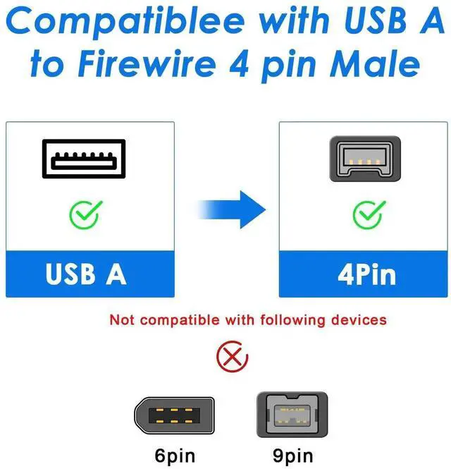 - This is a FireWire cable that features USB male to 4pin 1394a male connectors that enable you to connect 4-pin FireWire 800 (1394a) devices to computer.