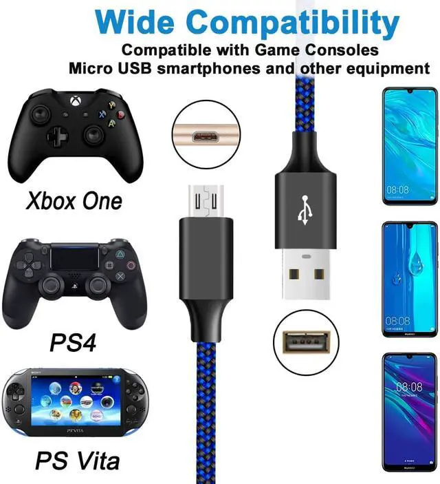 Compatibility]: Specifically designed for Xbox One Controller and PS4 Controller, allow you to take charge of your games. This android charger cords also compatible with Sony Playstation 4 Dualshock 4, PS Vita / Nintendo DS, Cell phone, Samsung Galaxy S7, S7 Edge, S6, S6 Edge, S2, S3, S4, Note 4 5, J3 J7. Compatible Motorola Moto G5 G4 G5S E4 E5, Nokia 6, Nokia Lumia, Compatible kindle Fire 7 8, LG Q6, LG G4 G3 G2 V10, LG Stylo 2/3 Plus, LG K7 K8 K10, Google Nexus 7 9, HTC One 10 M9 M9+ M8 M7 A9
