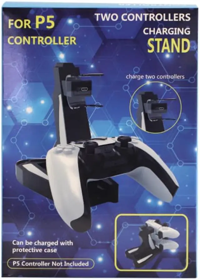 Features: The controller charger is compact in shape and provides a simple and quick method for charging and placing your PS5 wireless controller. Ideal for storing the ps5 wireless controller in the charger when you are not playing games. Two built-in USB-C adapter ports allow you to safely store and charge two PS5 controllers at the same time. Built in protection chip, you don't need to worry about overcharge / overheating / over-current / over-voltage / short-circuit / over discharge when charging.