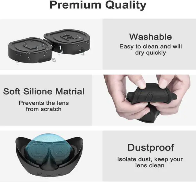 Installing and cleaning our dust cover is a breeze. Simply align it with the corresponding R and L lenses and apply pressure to clip it onto your VR lens. The cover is also washable and recyclable, making it an eco-friendly choice.