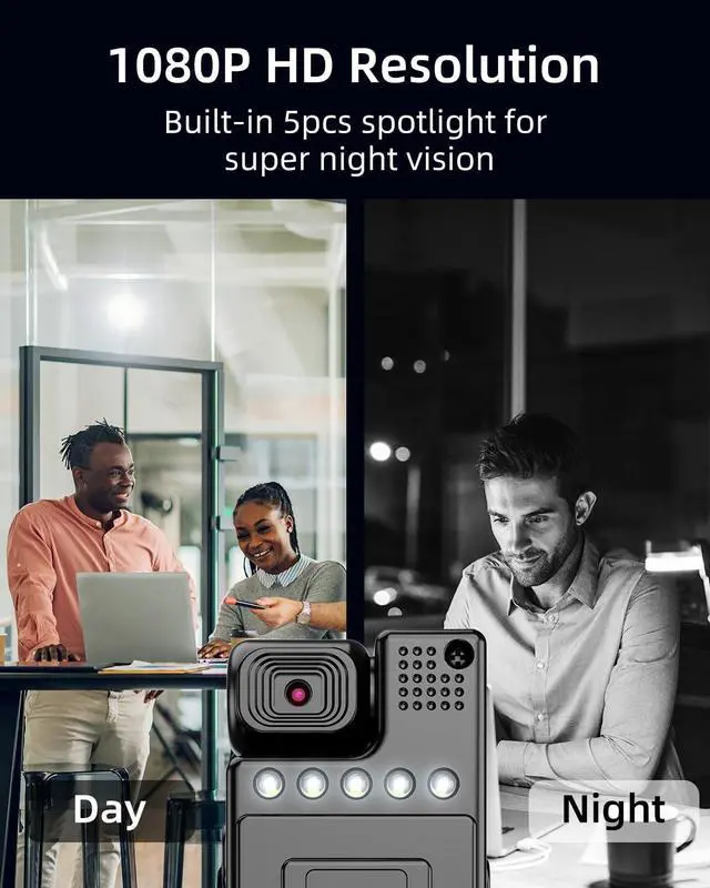 Enhanced Night Vision for Uncompromised Visibility: Enjoy exceptional night vision capabilities with the built-in 5pcs spotlights. Whether you're exploring dimly lit environments, monitoring your home, or ensuring workplace security, this body camera ensures clear and detailed footage, even in low-light conditions.