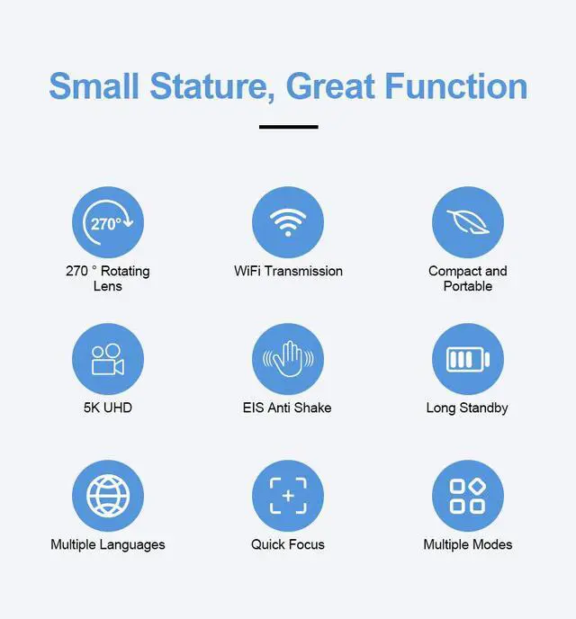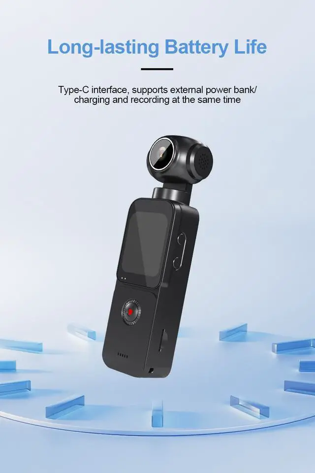 Capture every moment with this 5K Action Camera. Featuring 270° rotating lens, EIS anti-shake, and WiFi transmission, this portable recorder is perfect for outdoor cycling, conferences, and everyday recording.