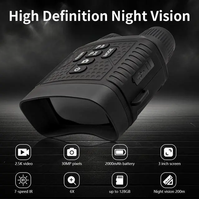 See in complete darkness with the NV8000 Infrared Night Vision Goggles. Featuring 2.5K video, 30MP photos, and 200M night vision range, it's perfect for outdoor hunting, wildlife observation, and security monitoring.