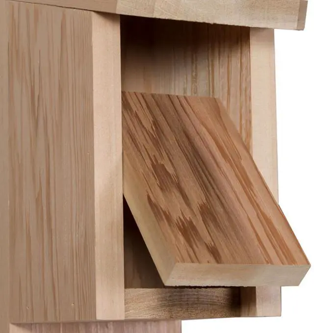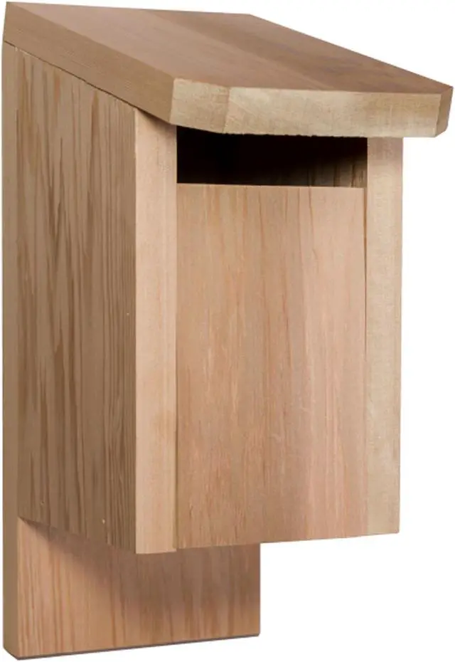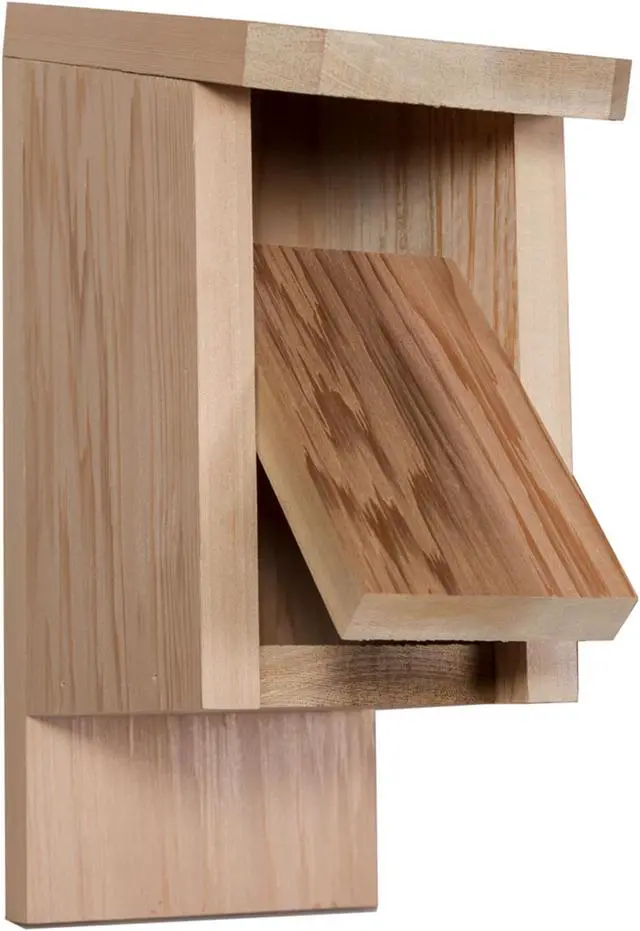 Made with, rot resistant, untreated, western red cedar Handcrafted, snug-fitting parts with a sanded finish A cozy retreat for your little garden friends Pivoting Front Door for Easy Access Overall dimensions: 5.5w x 8d x 12h - (full assembly required)