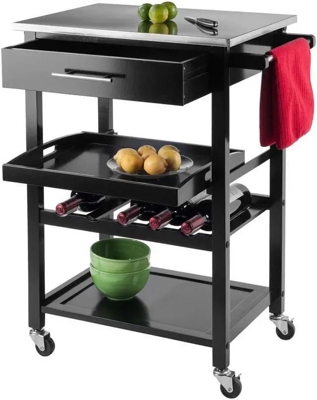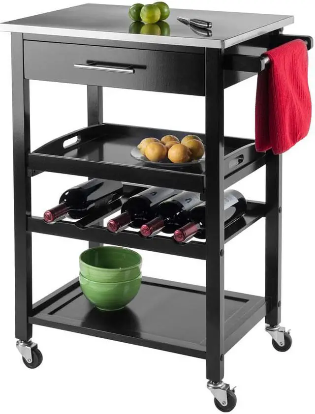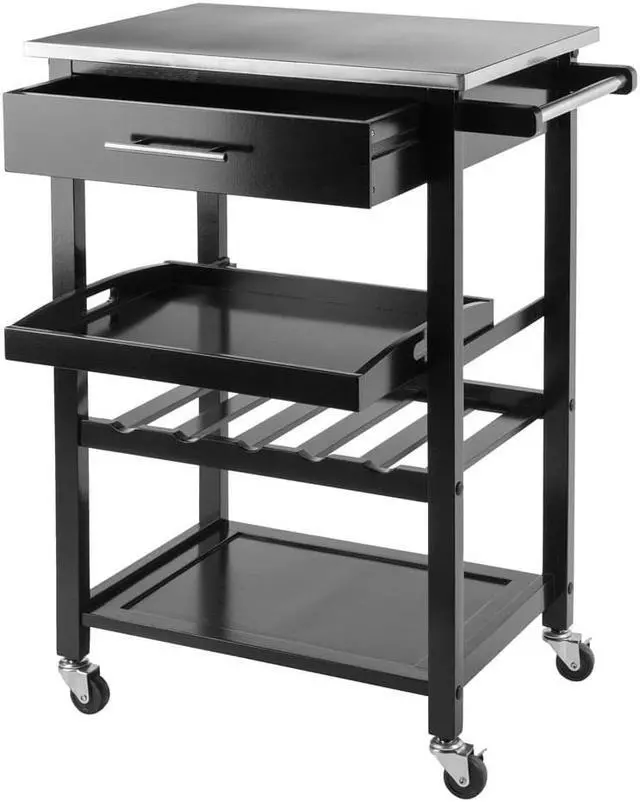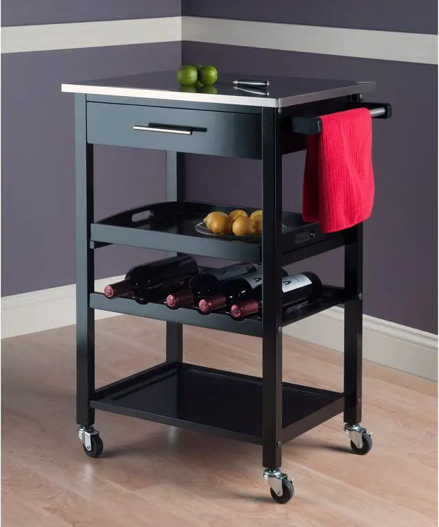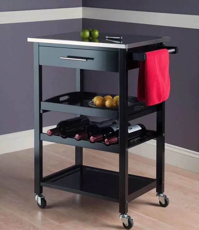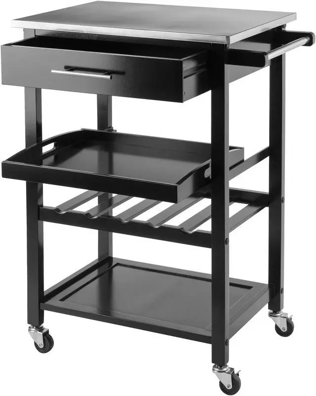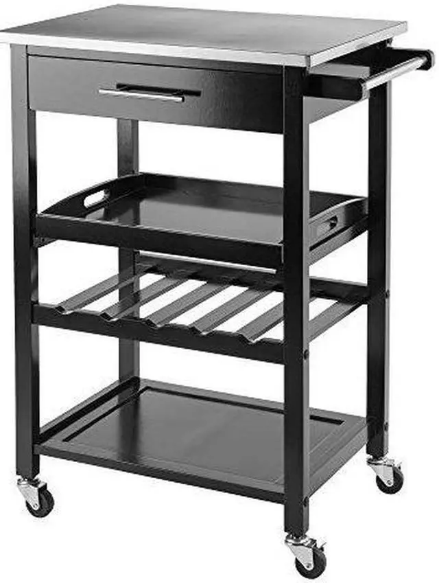 The Anthony Kitchen Cart with Stainless Steel Top gives your kitchen a modern touch while providing functionality to any space.
