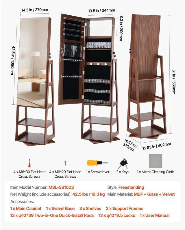 Cabinet Body Dimensions (W x H): 14.5 x 42.5 in / 370 x 1080 mm